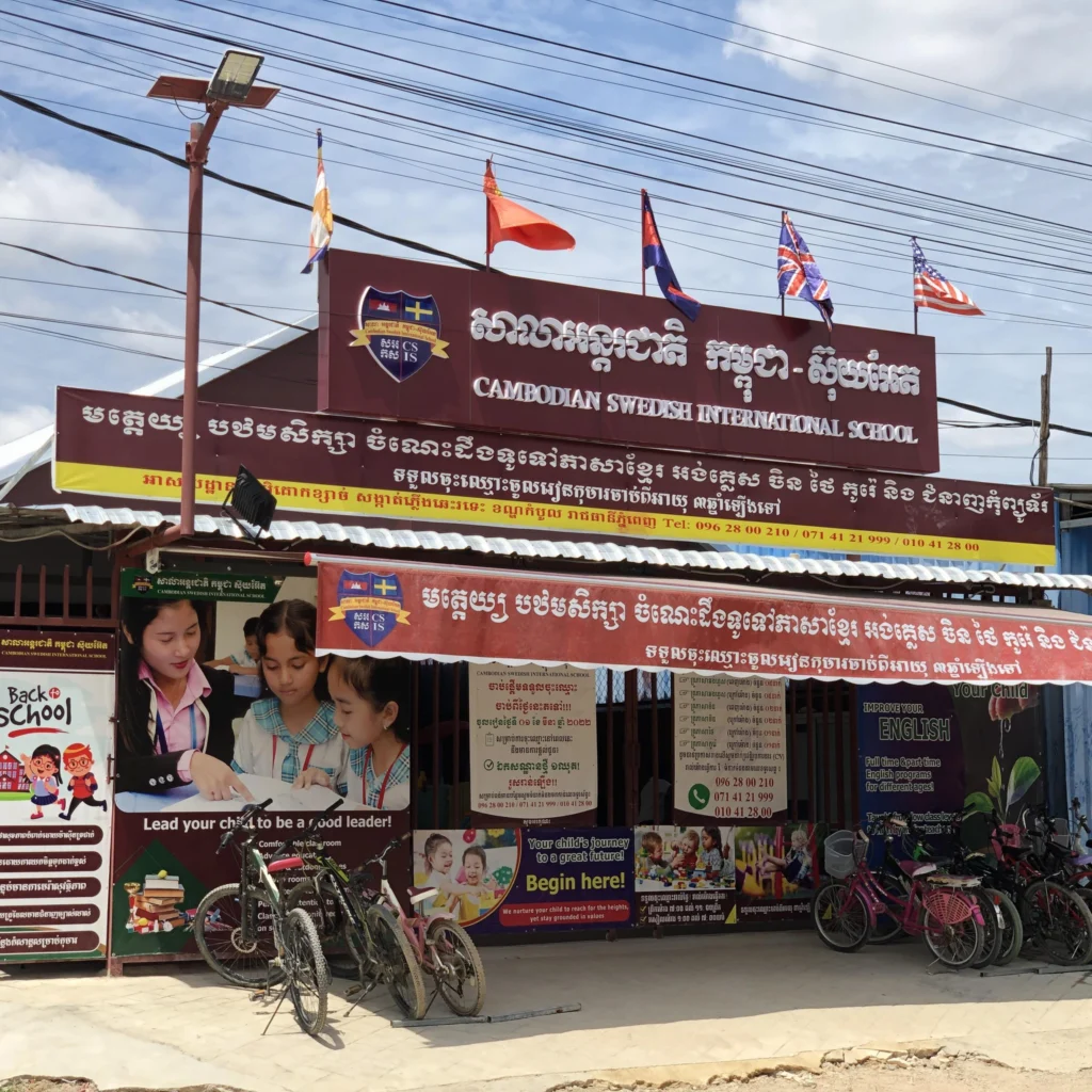Cambodian Sweden International School is a private international school in Phnom Penh, Cambodia, offering a bilingual education that combines international teaching methods with a strong academic foundation. The school provides programs for preschool, primary, and secondary students, supporting both Cambodian and international learners. Cambodian Sweden International School focuses on developing English language proficiency, critical thinking, and global awareness while also respecting local culture and values. Students benefit from interactive lessons, modern classrooms, and a learning environment designed to encourage creativity and collaboration. The school promotes a balanced education that includes academics, social development, and extracurricular activities. With its international approach and supportive learning atmosphere, Cambodian Sweden International School aims to prepare students for further education and global opportunities.