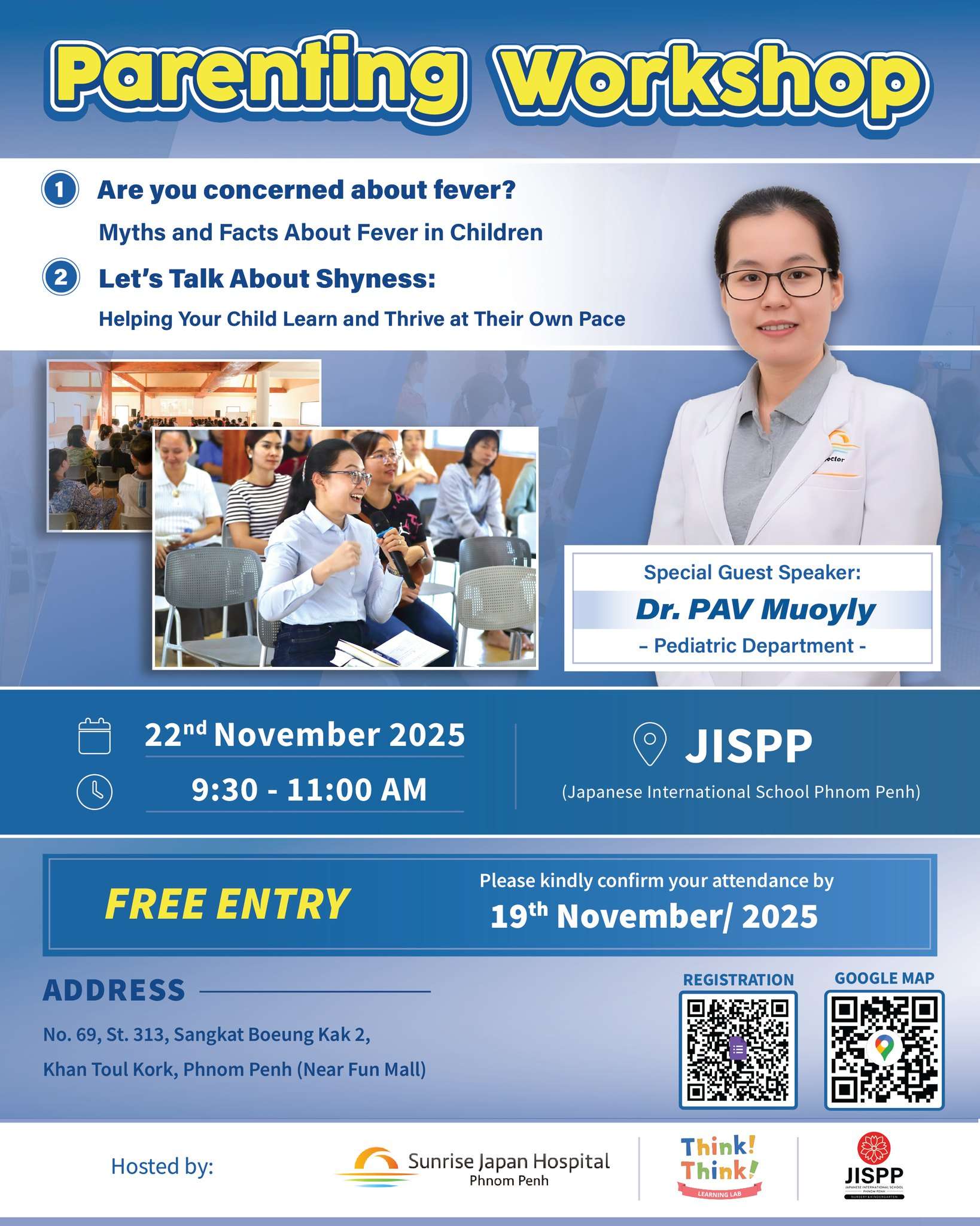 Supporting children as they grow into confident, healthy individuals is a shared responsibility between families and schools. This month, the Japanese International School Phnom Penh (JISPP) is hosting a Parenting Workshop designed to bring parents valuable guidance on two important topics: understanding fever in children and helping young learners overcome shyness. The event highlights the school’s initiative to strengthen parent–school collaboration through accessible and practical learning opportunities.